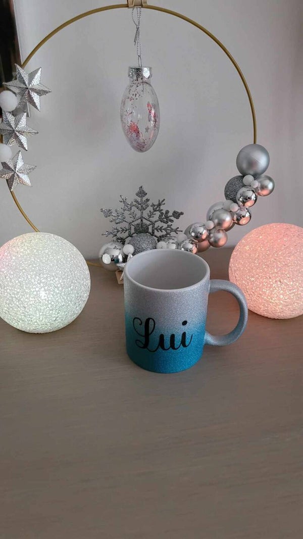 Ajoutez une touche d’éclat à vos pauses café avec ce mug pailleté bleu unique et personnalisable.