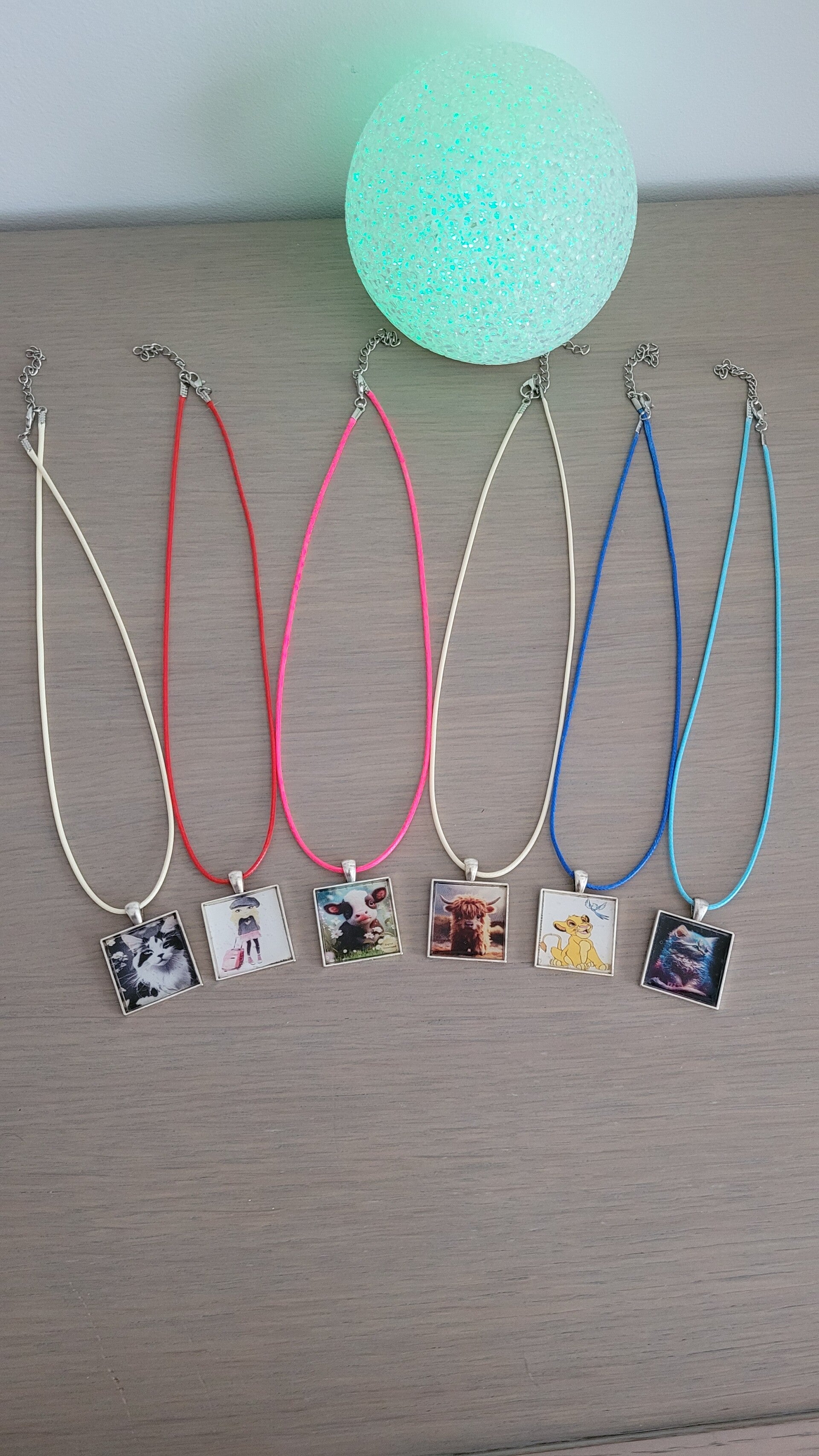 Découvrez ces pendentifs artisanaux au design carré moderne, fabriqués à la main en résine colorée dans mon atelier.