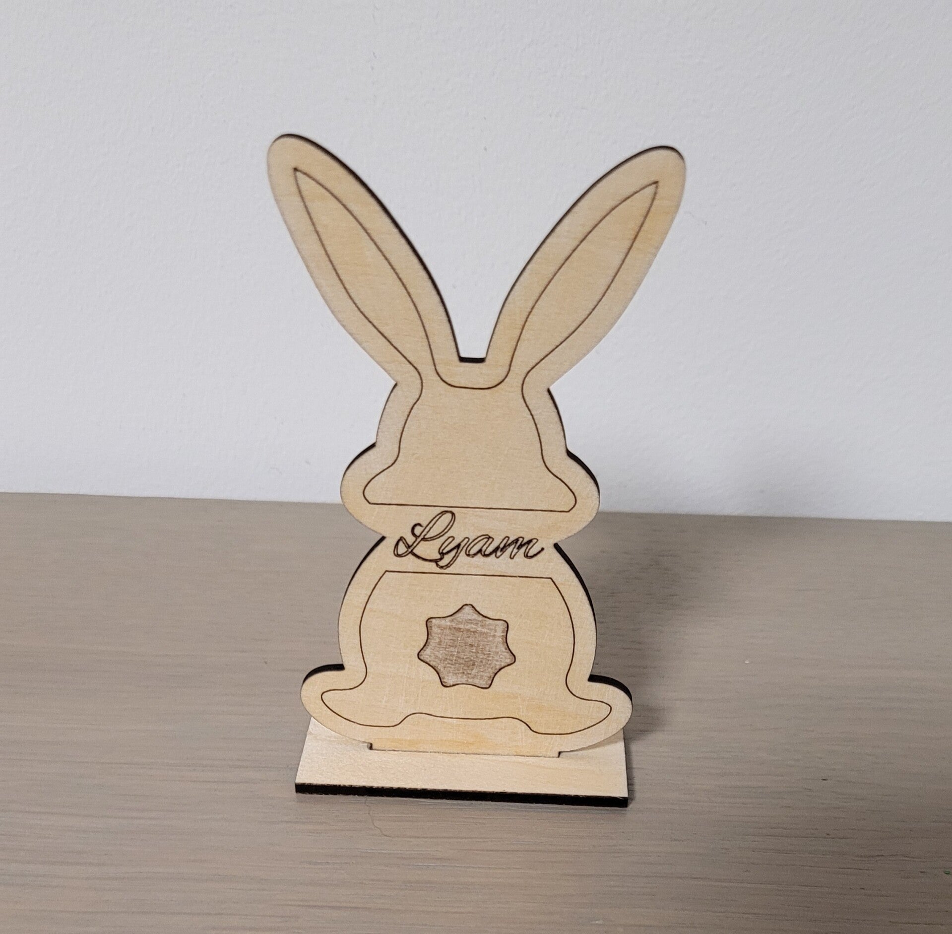 Lapin de Pâques personnalisé en bois gravé – décoration artisanale