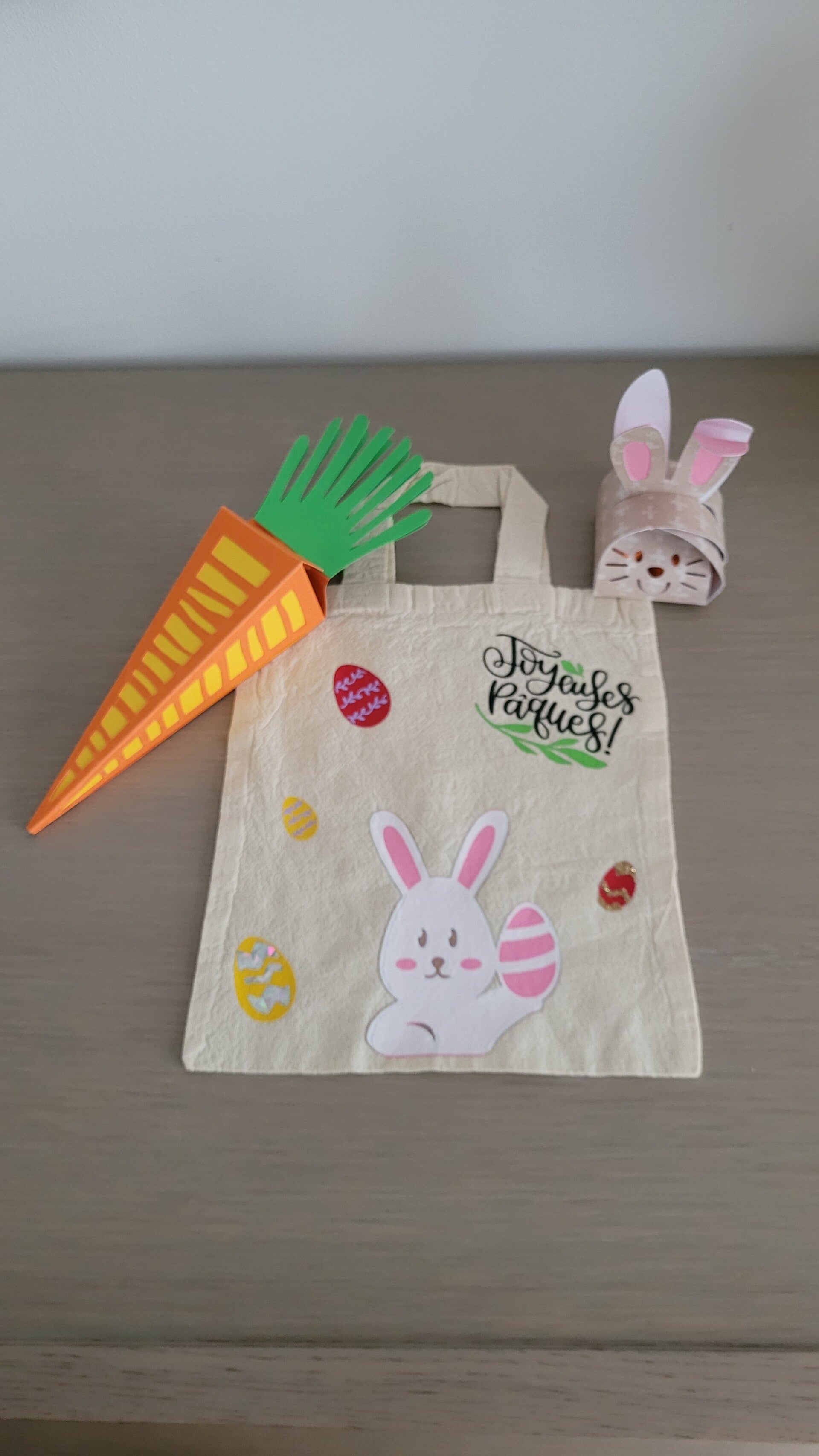 tote bag paques personnalisables 19 cm de large sur 23 cm de hauteur 5 €