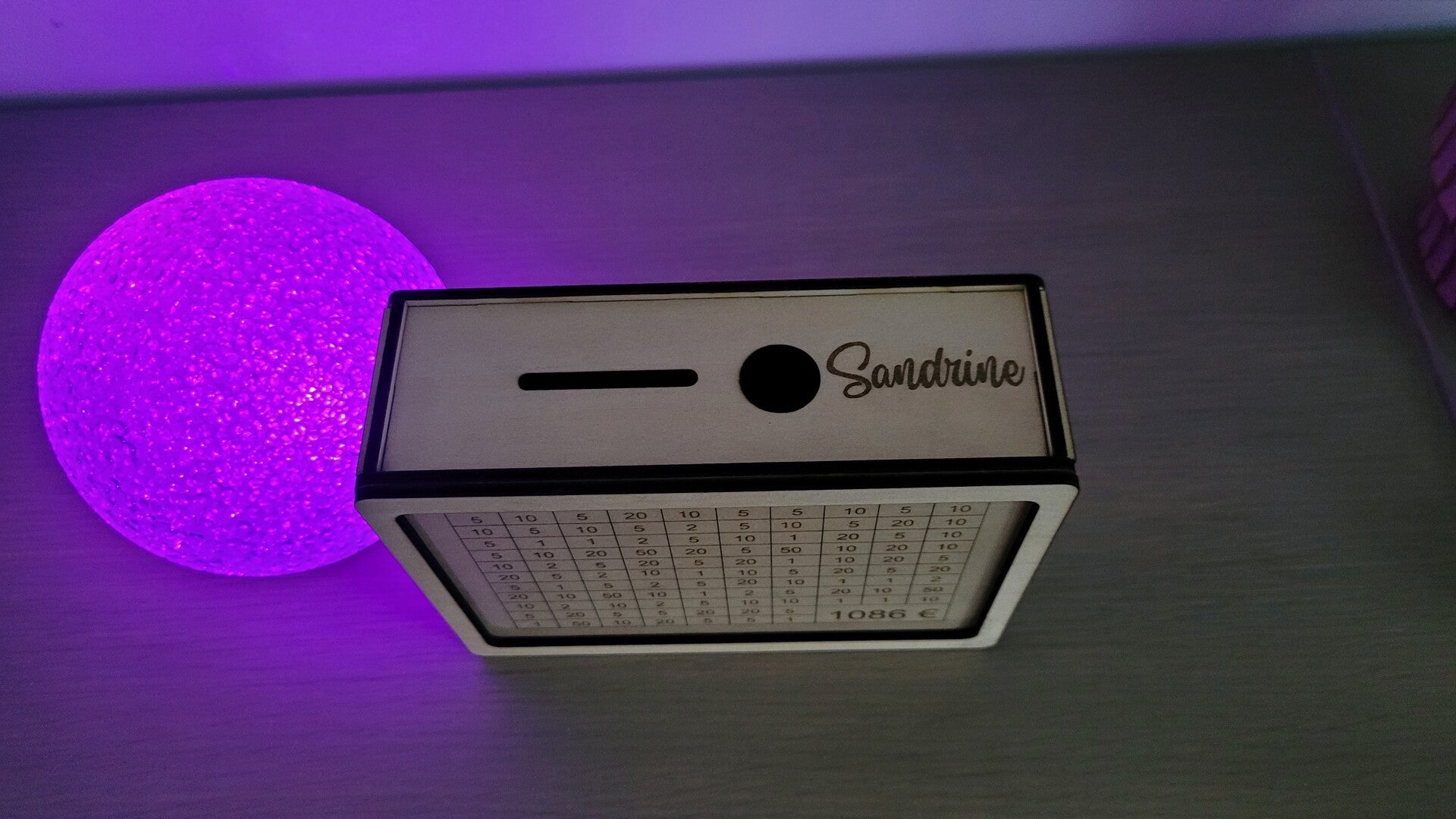 Tirelire artisanale en bois, entièrement personnalisable avec prénom, motif ou texte de ton choix.