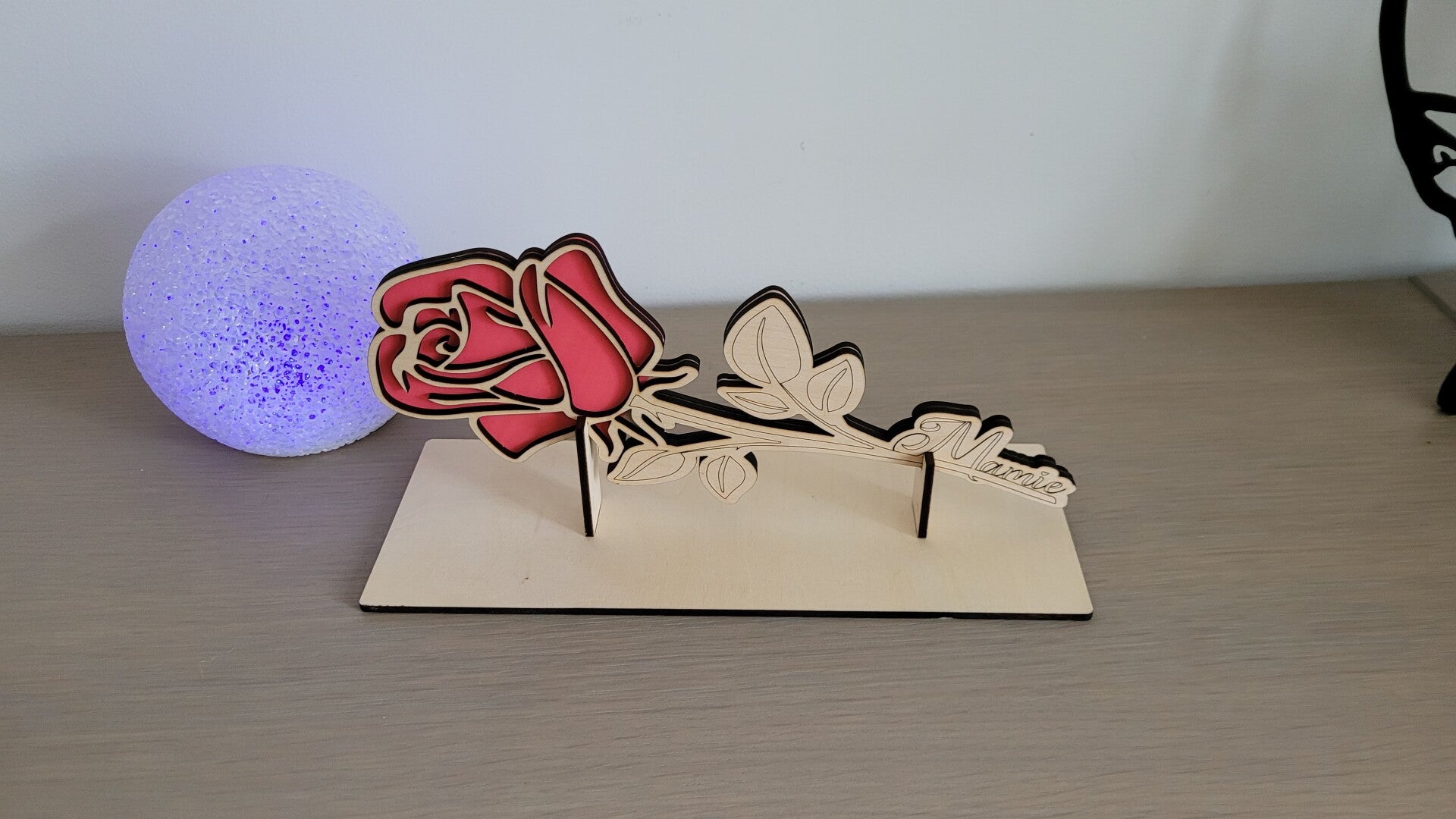 Réalisée en bois et montée sur son socle, cette décoration est personnalisable avec un prénom, un mot doux ou une date.