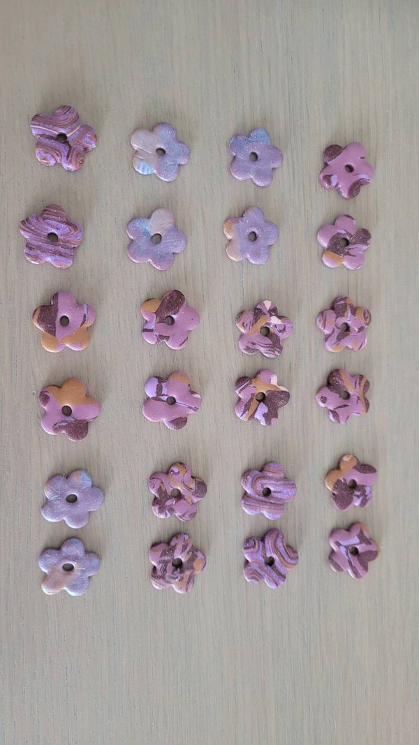 🔸 Forme fleur 🔸 Motifs unis, marbrés, multicolores ou texturés 🔸 Finition brillante en résine 🔸 Ultra légères et agréables à porter
