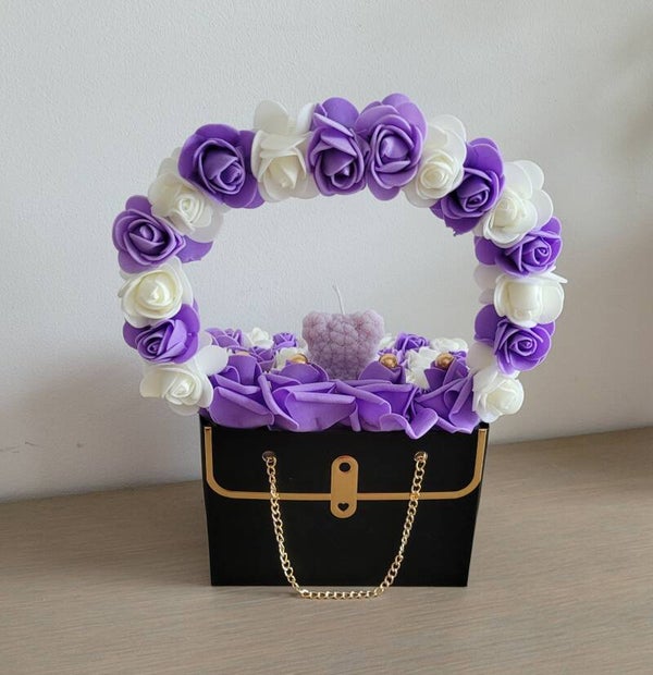 Ce coffret élégant en forme de sac est entièrement réalisé à la main et décoré avec soin. Il apportera une touche douce et parfumée à votre intérieur ou constituera un cadeau original pour une naissance, un anniversaire ou tout autre moment à célébrer.