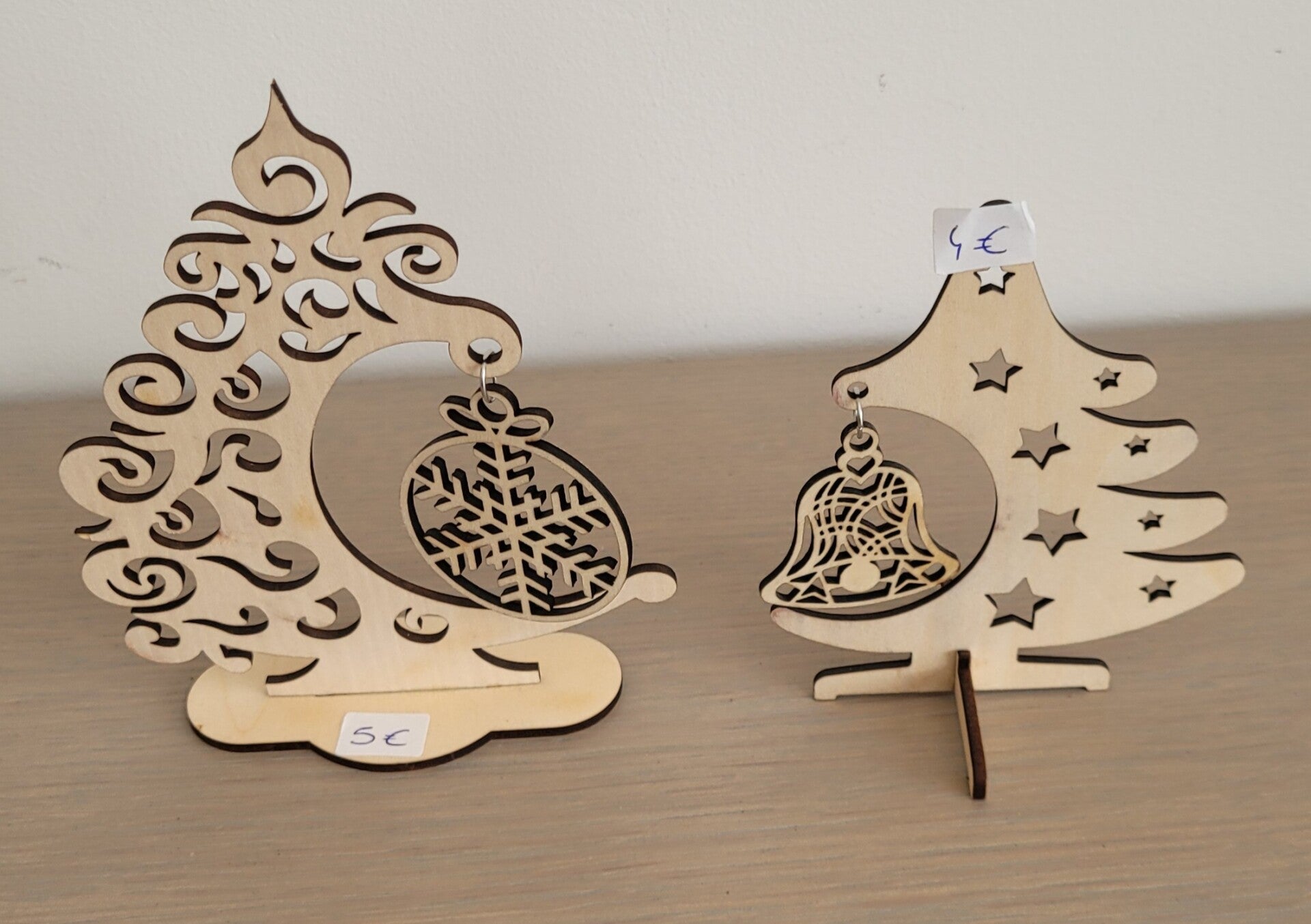 Décorations en bois – Sapin boule (15 cm) / Sapin cloche (12 cm)