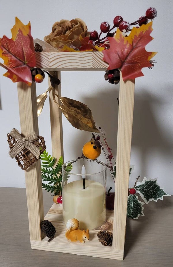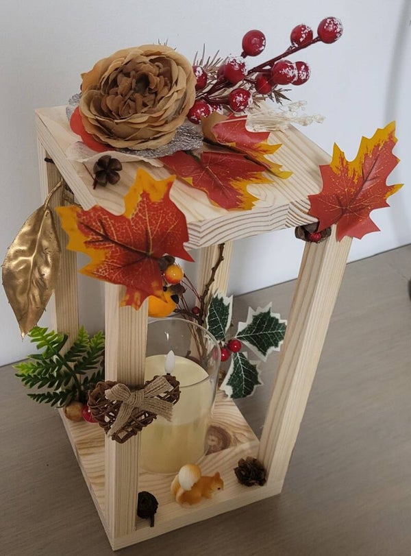✨ Lanterne décorative d’automne – Pièce artisanale unique