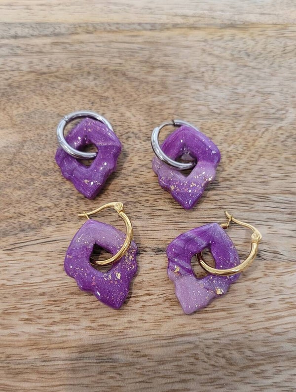 Réalisées à la main en pâte polymère, puis protégées par une finition résine brillante, les pampilles Iris offrent un rendu lumineux, lisse et une belle durabilité.