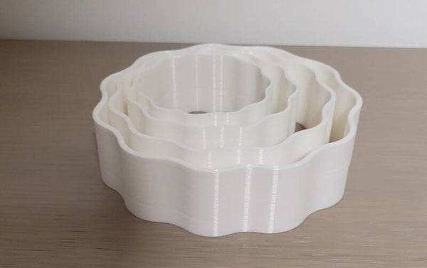 Lot de 4 emporte-pièces en forme de fleur ondulée, imprimés en 3D avec soin dans l’atelier Cococrea.