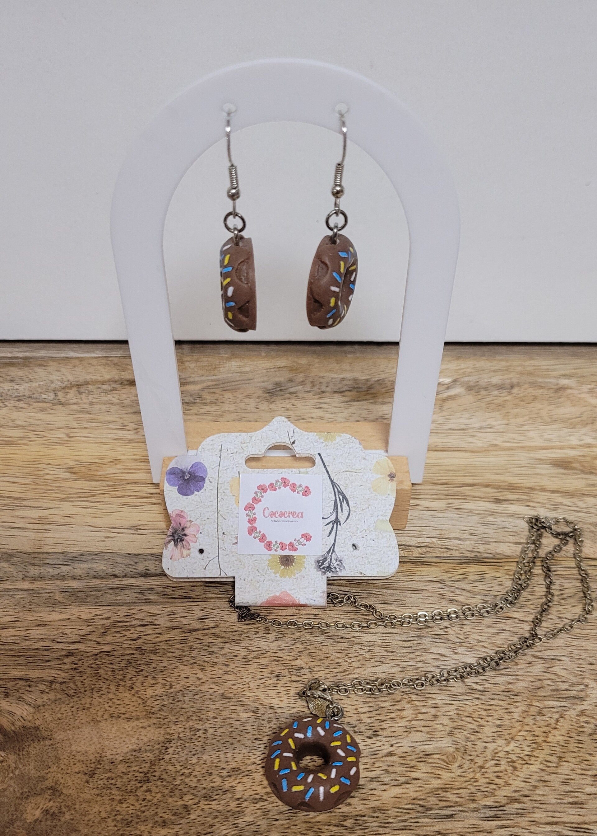 Parure bijoux Donut gourmande – Collier & boucles d’oreilles fantaisie