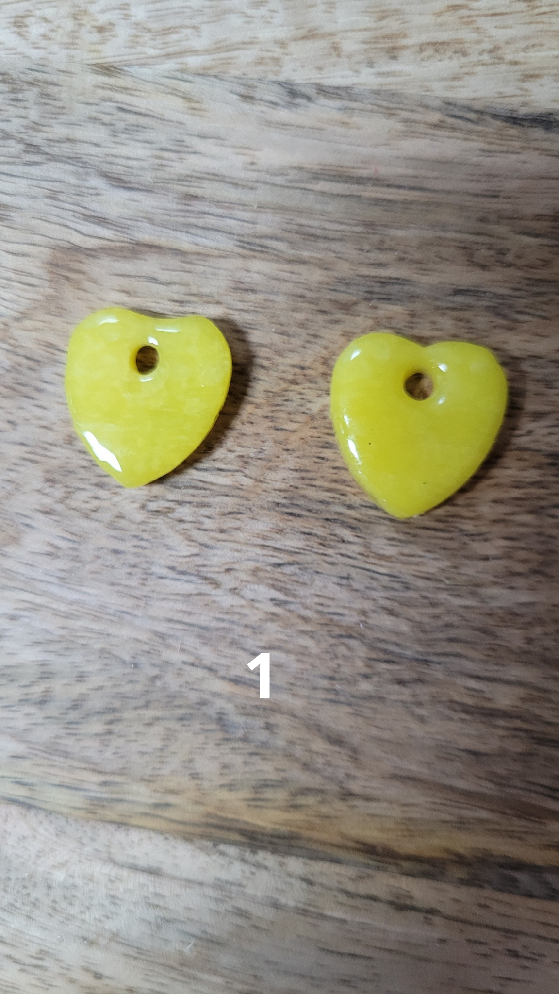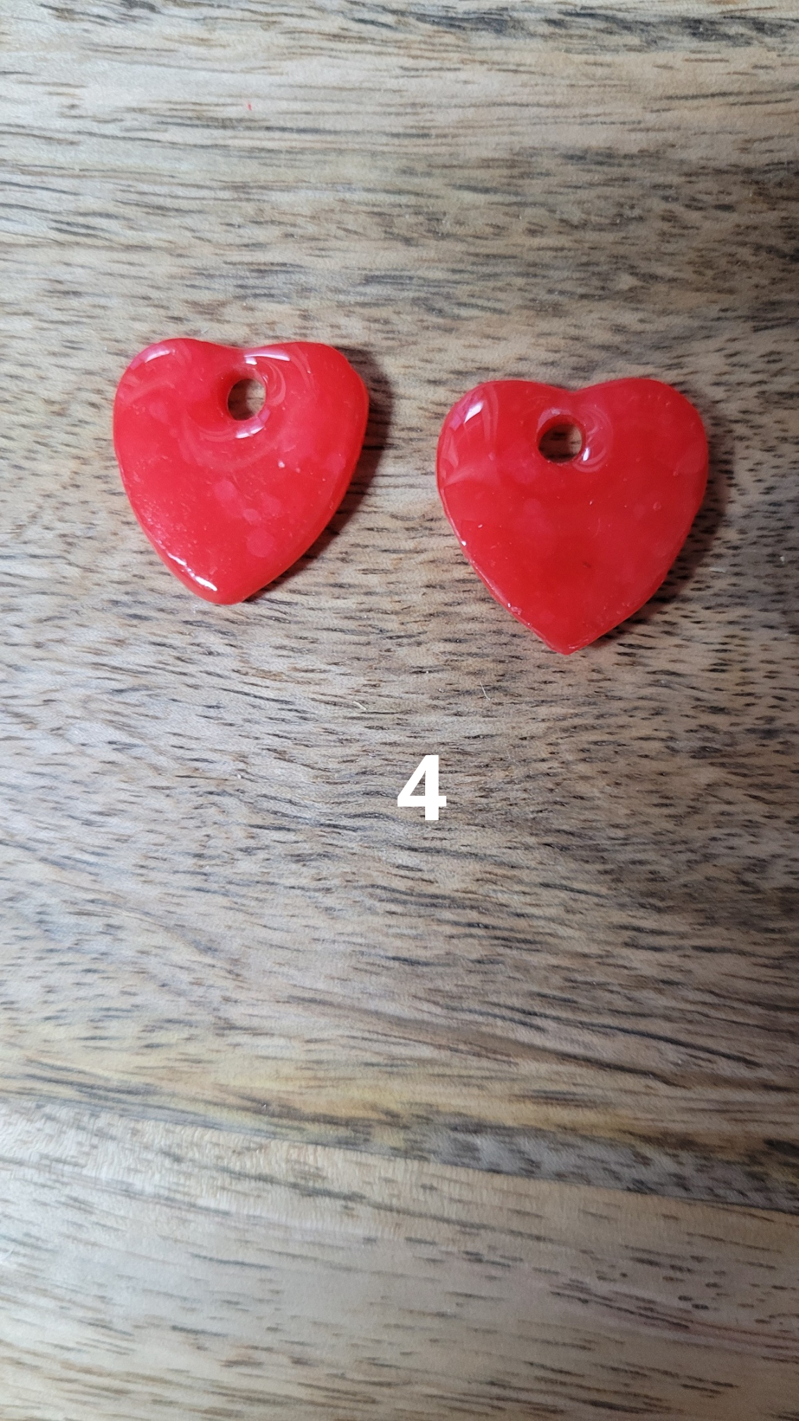 Boucles d’oreilles pampilles en pâte polymère avec finition résine, en forme de cœur, pour un rendu brillant et élégant.