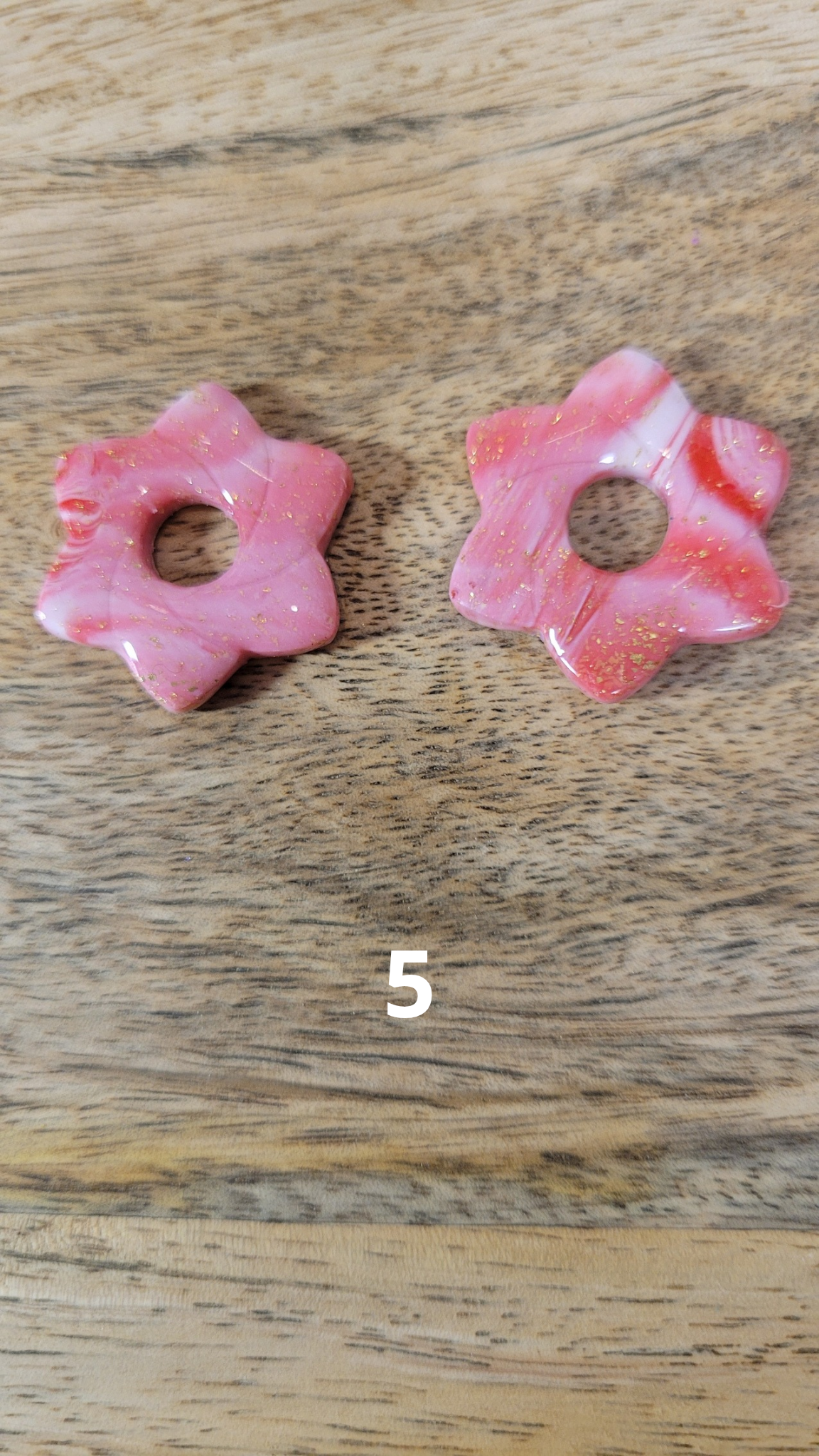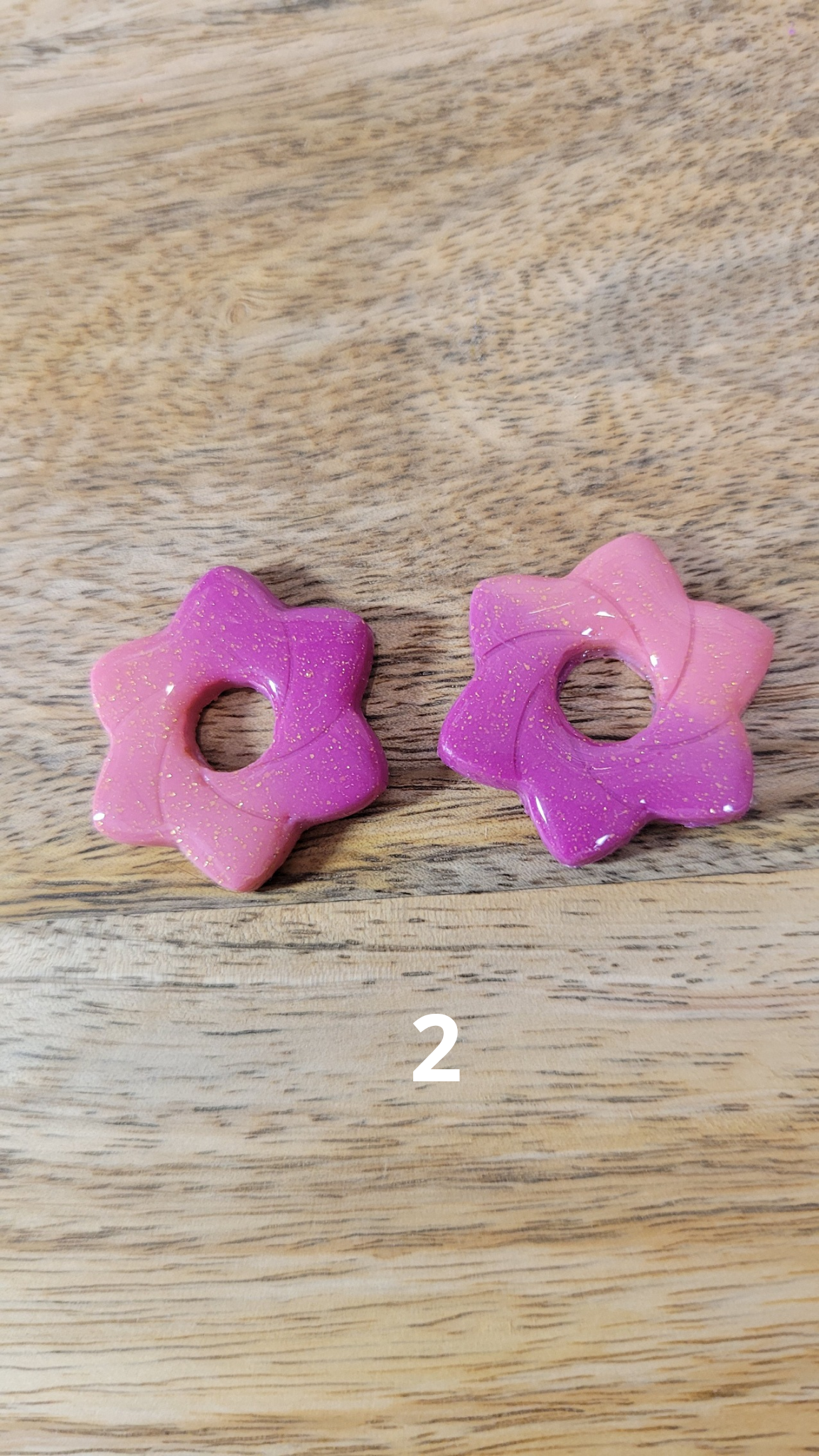 Boucles d’oreilles pampilles en pâte polymère avec finition résine, en forme de fleur, pour un rendu brillant et délicat.