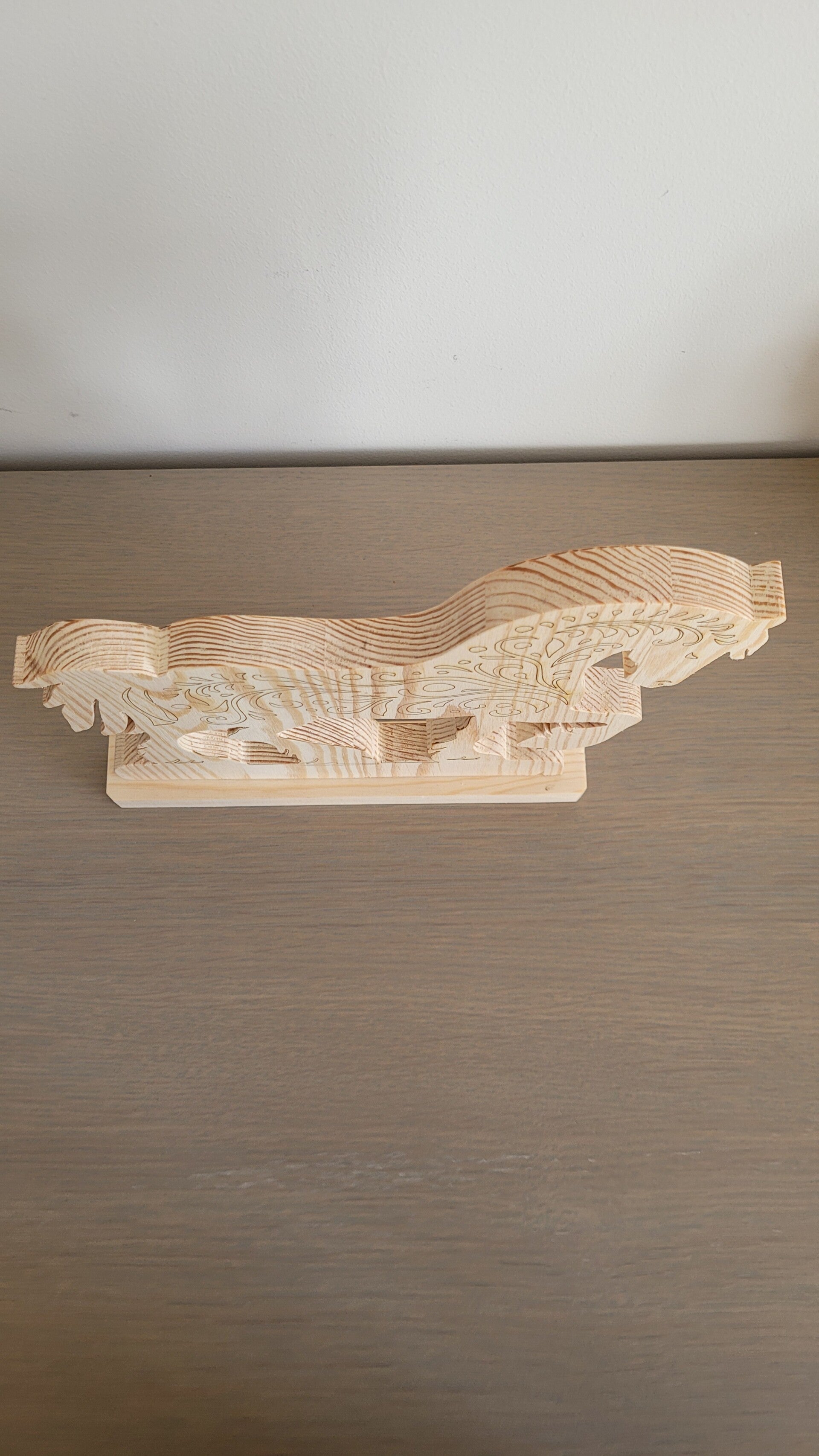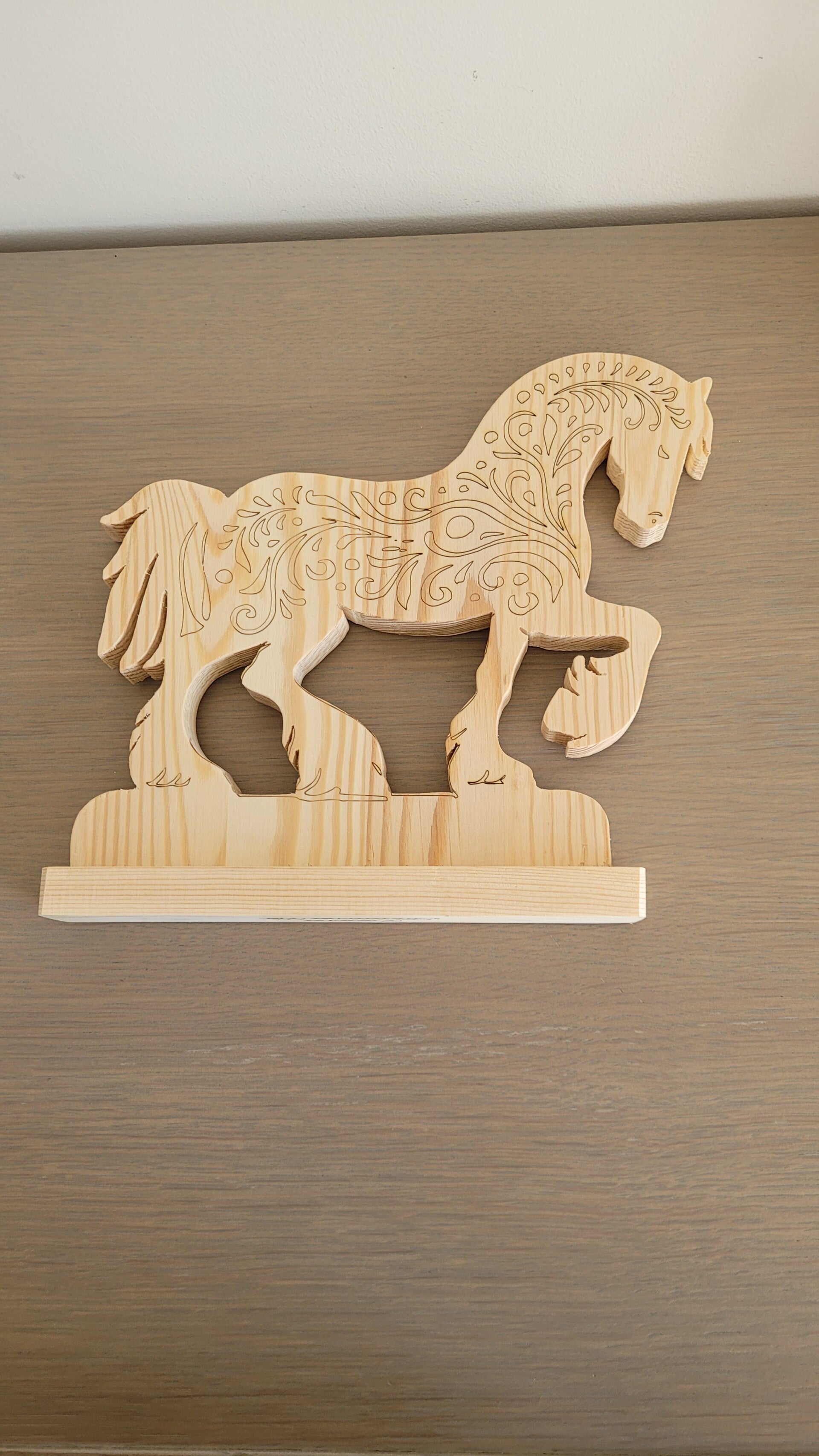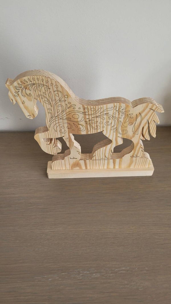 Cheval en bois gravé fait main – décoration artisanale – idée cadeau