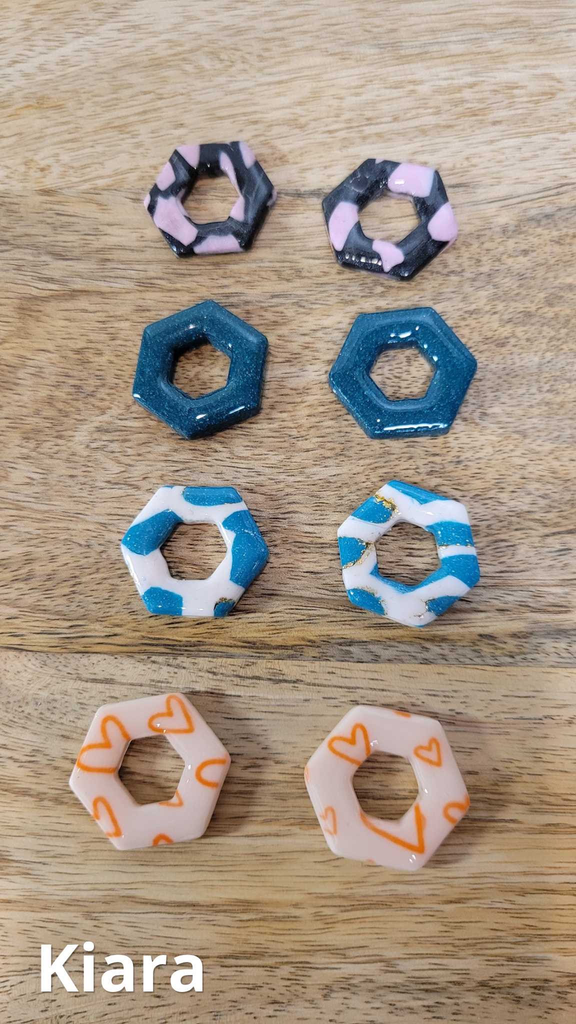 Boucles d’oreilles pampilles Kiara en pâte polymère avec finition résine, pour un rendu brillant, moderne et élégant ✨