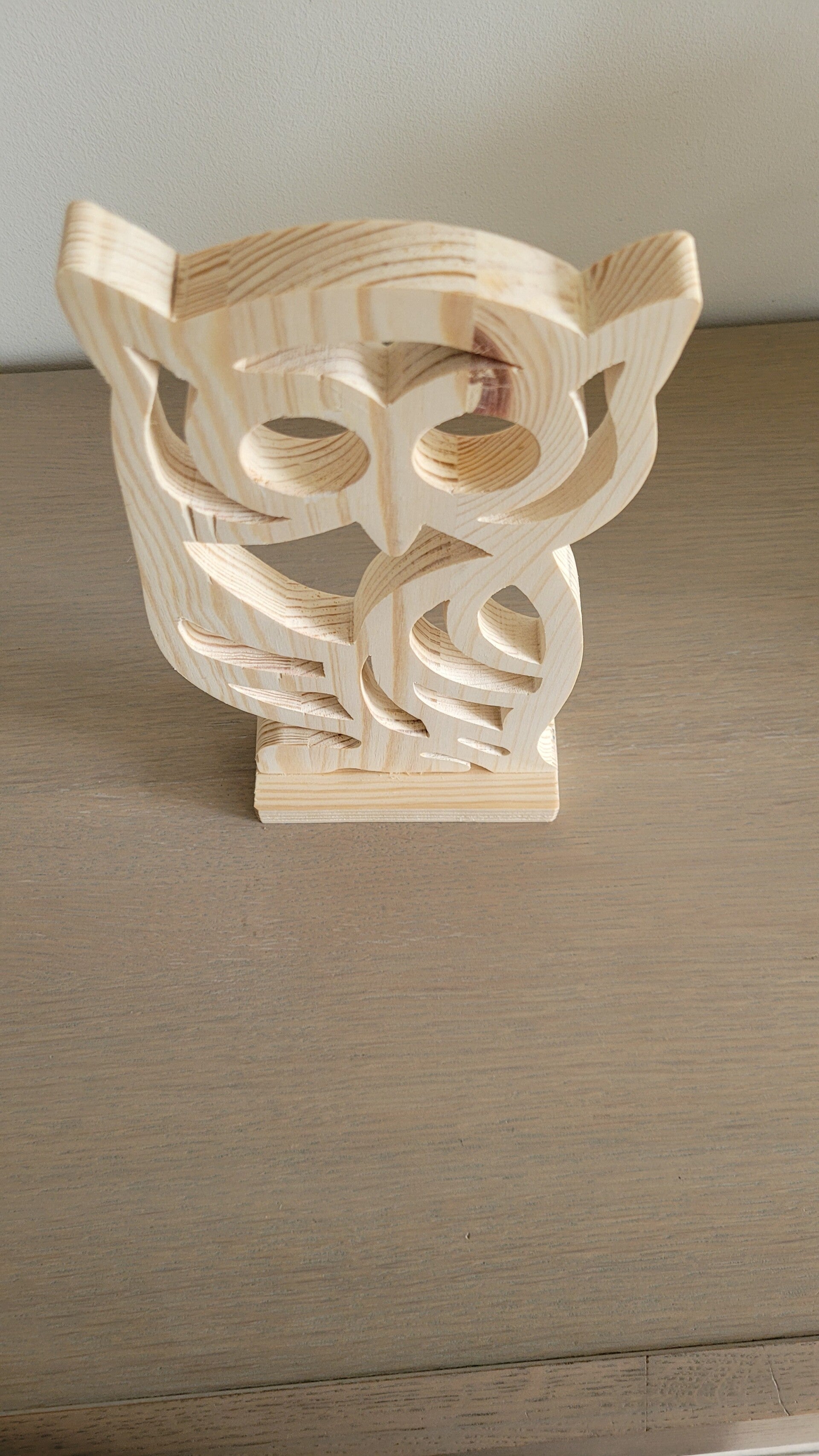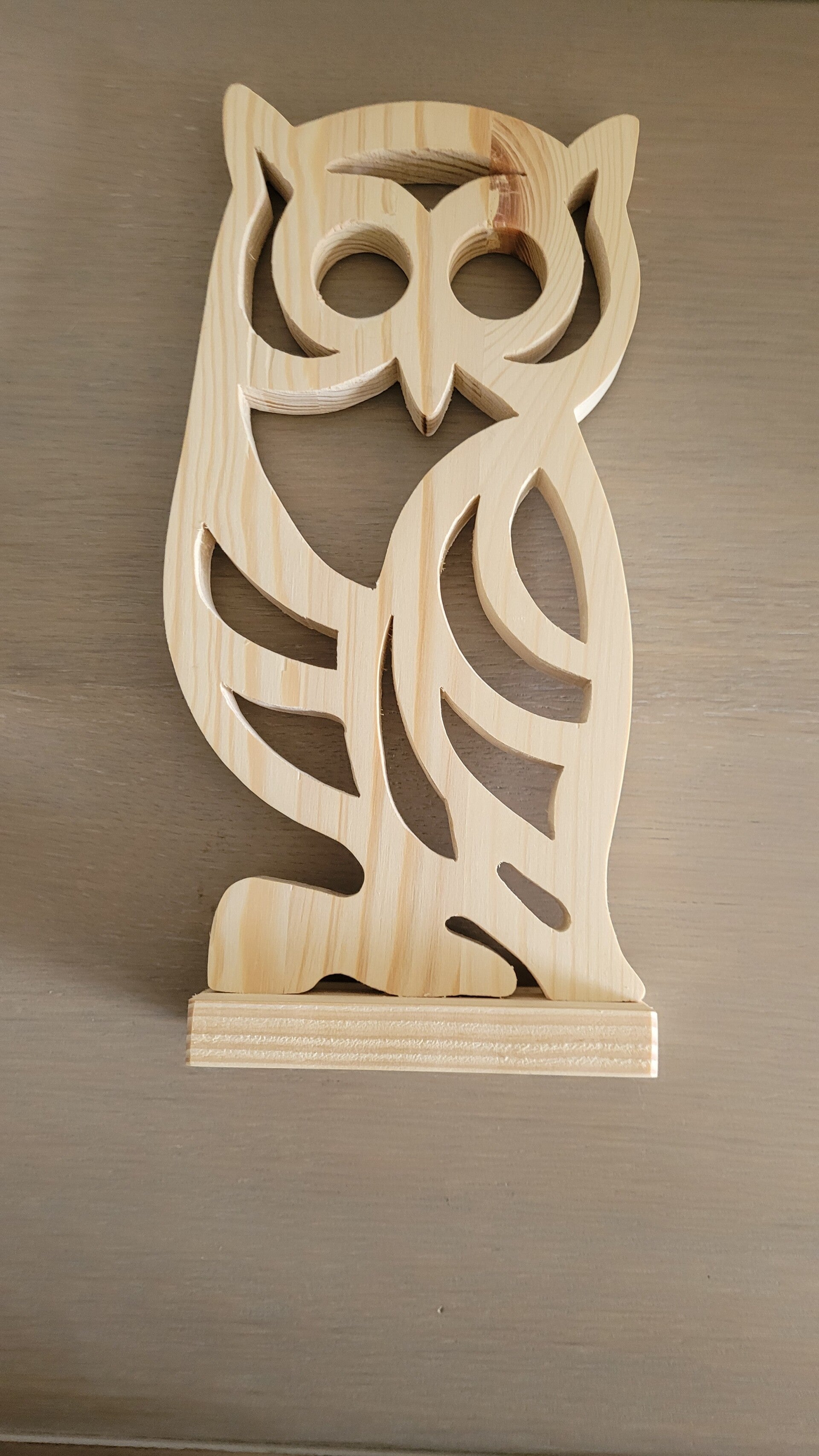 Chouette décorative en bois, découpée avec précision pour un rendu élégant et naturel ✨
