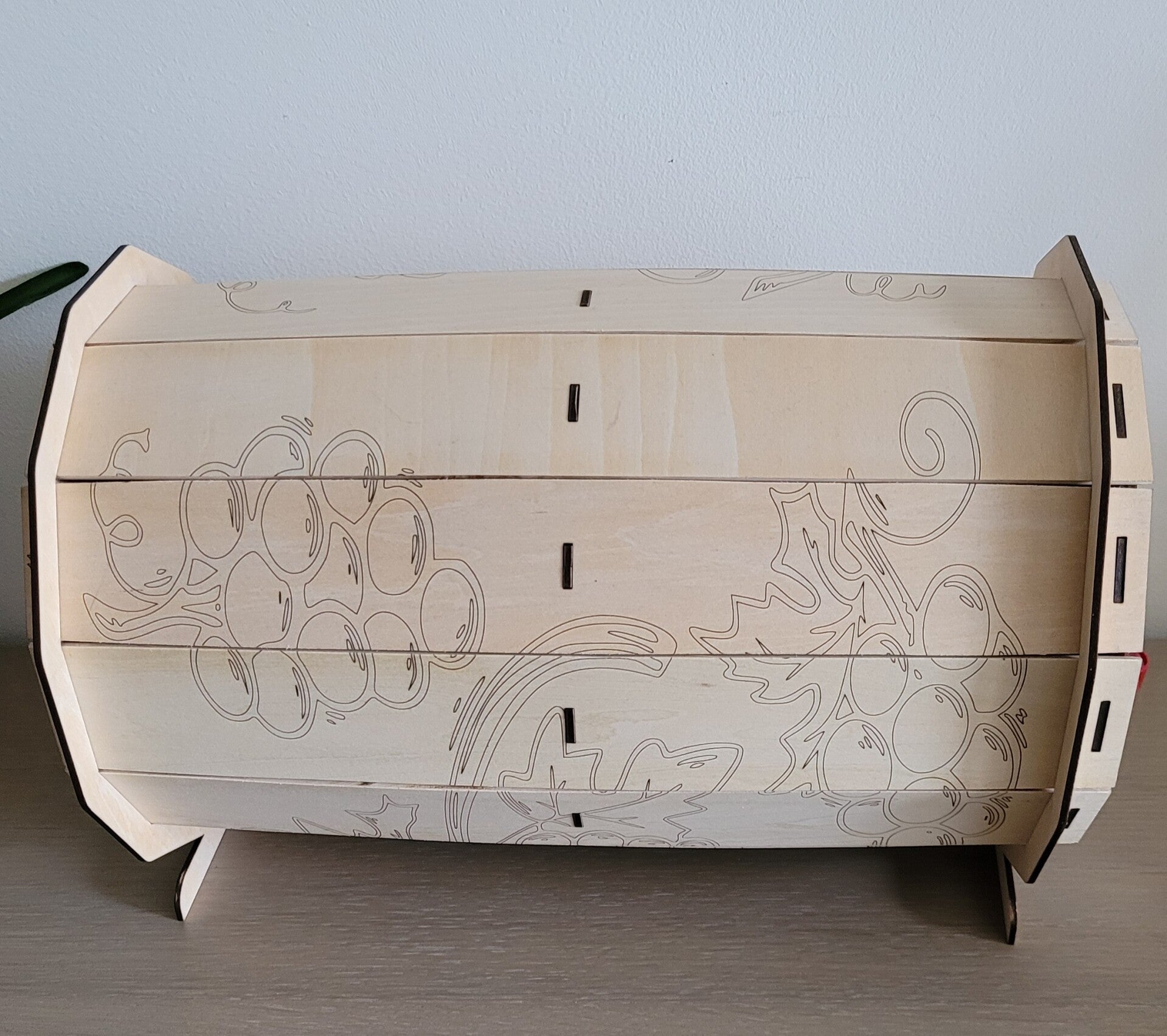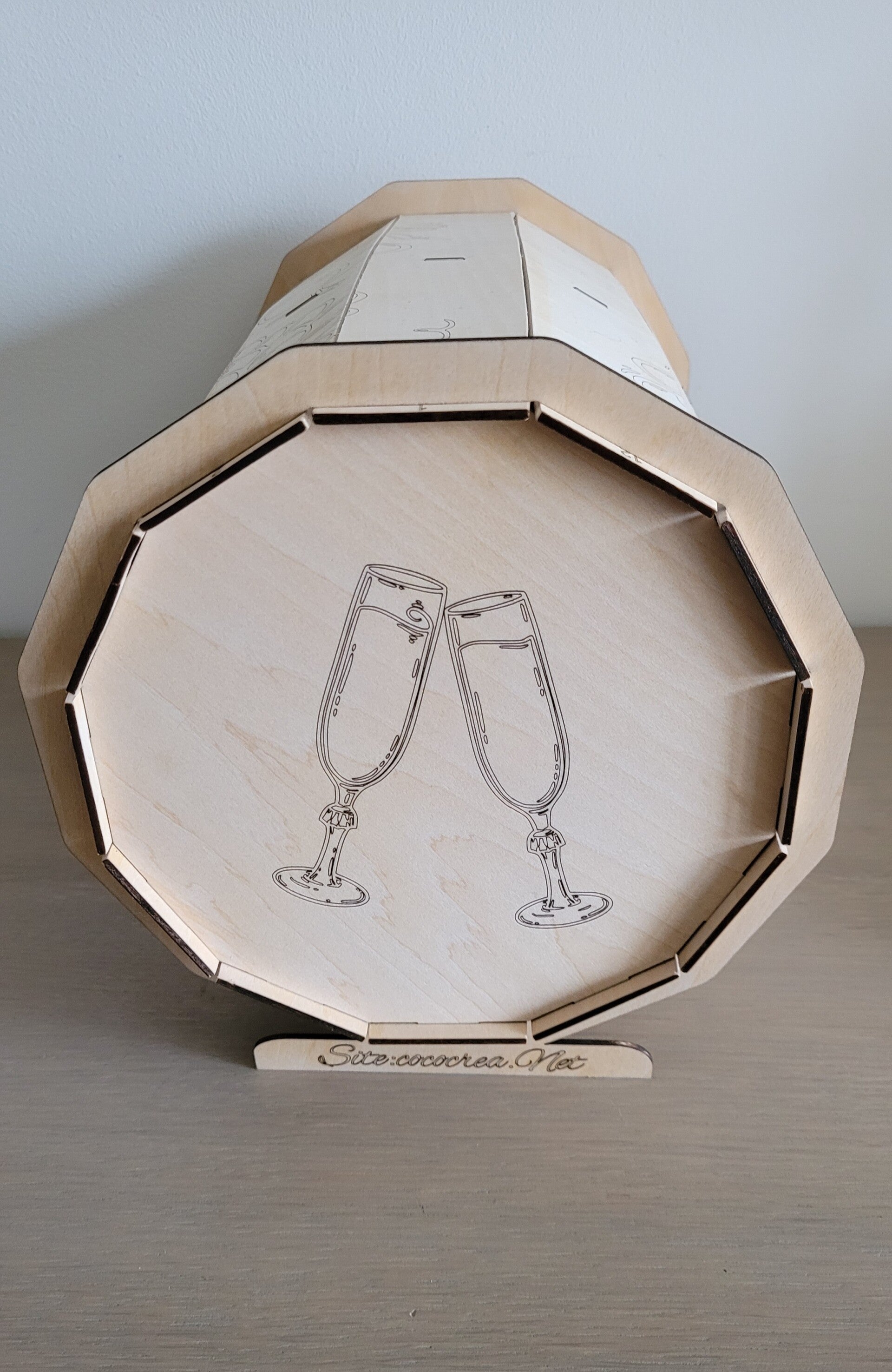 Tonneau en bois décoratif et fonctionnel, idéal pour accueillir une poche de vin (cubi) ou servir de tirelire originale ✨