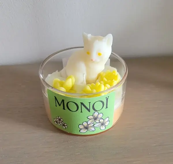Laissez-vous séduire par cette bougie parfumée senteur Monoï, une création artisanale ensoleillée et exotique signée Cococrea.