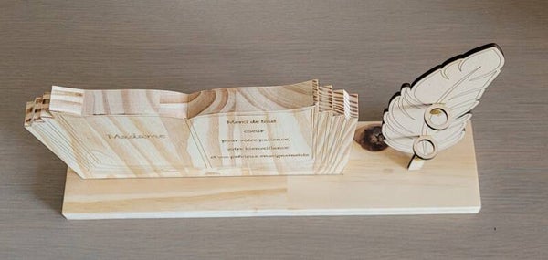 Fabriqué en bois et découpé avec précision, ce modèle allie élégance et originalité. La plume permet d’ajouter un stylo pour une touche encore plus symbolique.